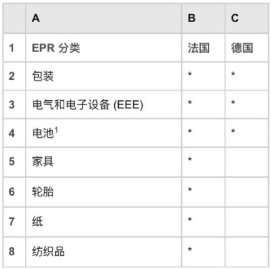 以下是適用于 【 法國和德國 〕 生產者延伸責任義務范圍內的商品分類,對于這些商品,您需要向亞馬遜提供生產者延伸貴任注冊號。