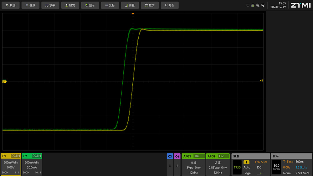 ZUS6000系列本身采用了12bit的ADC,采樣率高達(dá)5GSa/s,測量帶寬可以支持1GHz,其測量精度可以達(dá)到0.5%,并且有足夠的帶寬保證,因此可以保證ZUS6000在無線充電頻率段的信號準(zhǔn)確測量。
