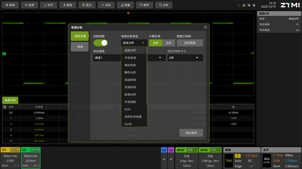 電源分析功能:效率測試、諧波分析、功率參數(shù)測量