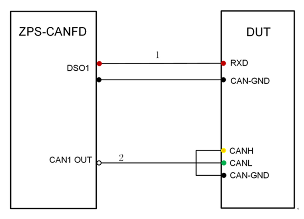 連接設備:按照圖3所示,連接CANH、CANL、CAN-GND,并將ZPS-CANFD的DSO口DUT的RX和地線相連(如果DUT無法引出RX可以用網絡采樣點評估功能)。
